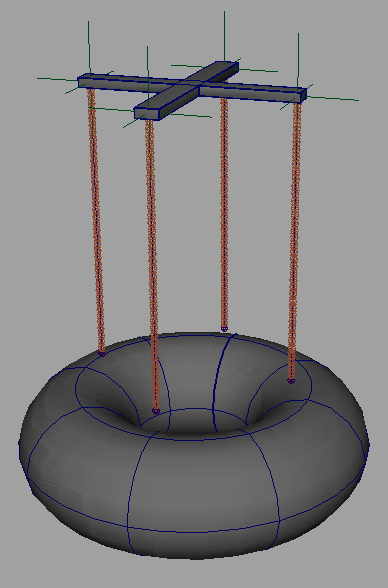Now if you display the current position and playback while moving the torus and/or the controller the curves will stay attached at both ends. Note that it is a much harder setup if you want to dynamically control the motion of the torus with the controller. (you might need to use rigid bodies with chains of pin constraints)